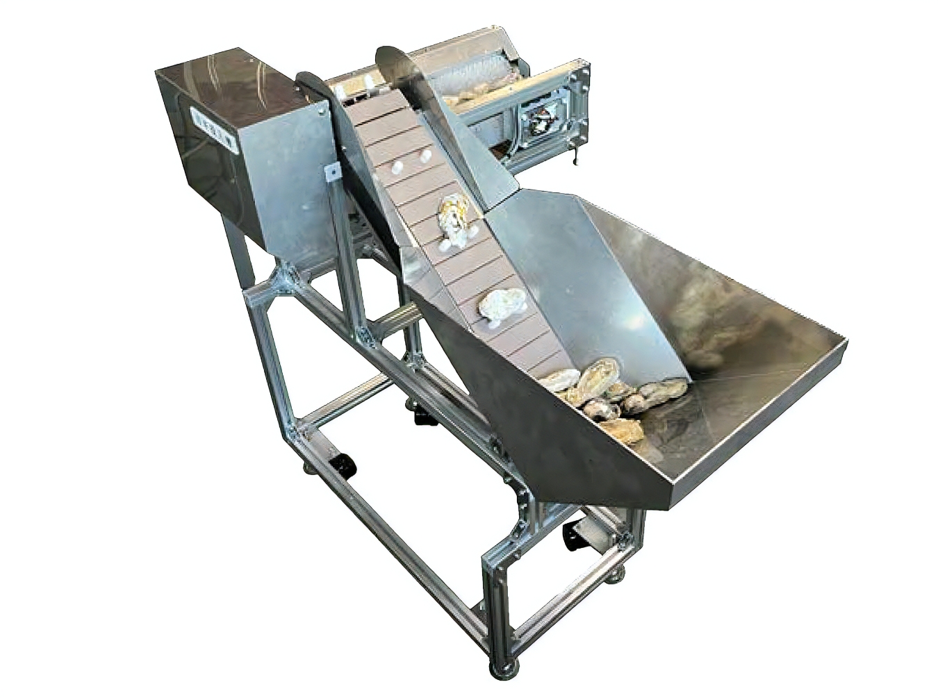 ホッパーに牡蠣を投入するだけで自動で牡蠣重量選別機に投入します。